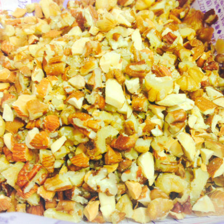 まずはアーモンドやくるみなどのナッツ類を細かく砕きます。包丁で切ったりしながら、なるべく細かく。